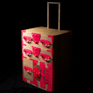 越前箪笥(福井)の技法で箱を製作。装飾に石川・富山の伝統的工芸品を用いた北陸三県コラボレーションシャンパンケース。お店でシャンパン提供する際のちょっとした演出に!